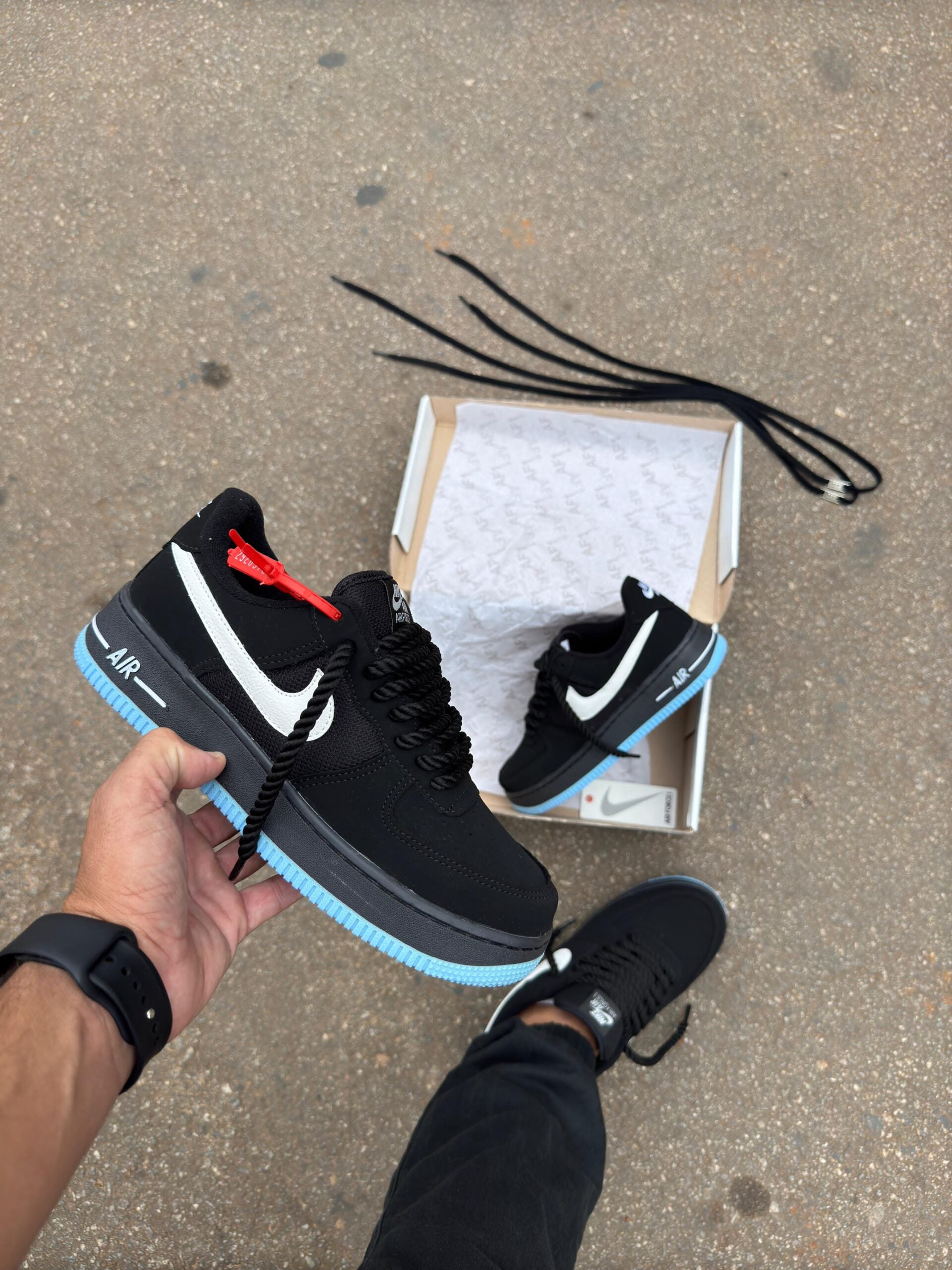 Tênis Nike Air Force Preto Azul Masculino Premium TESTE