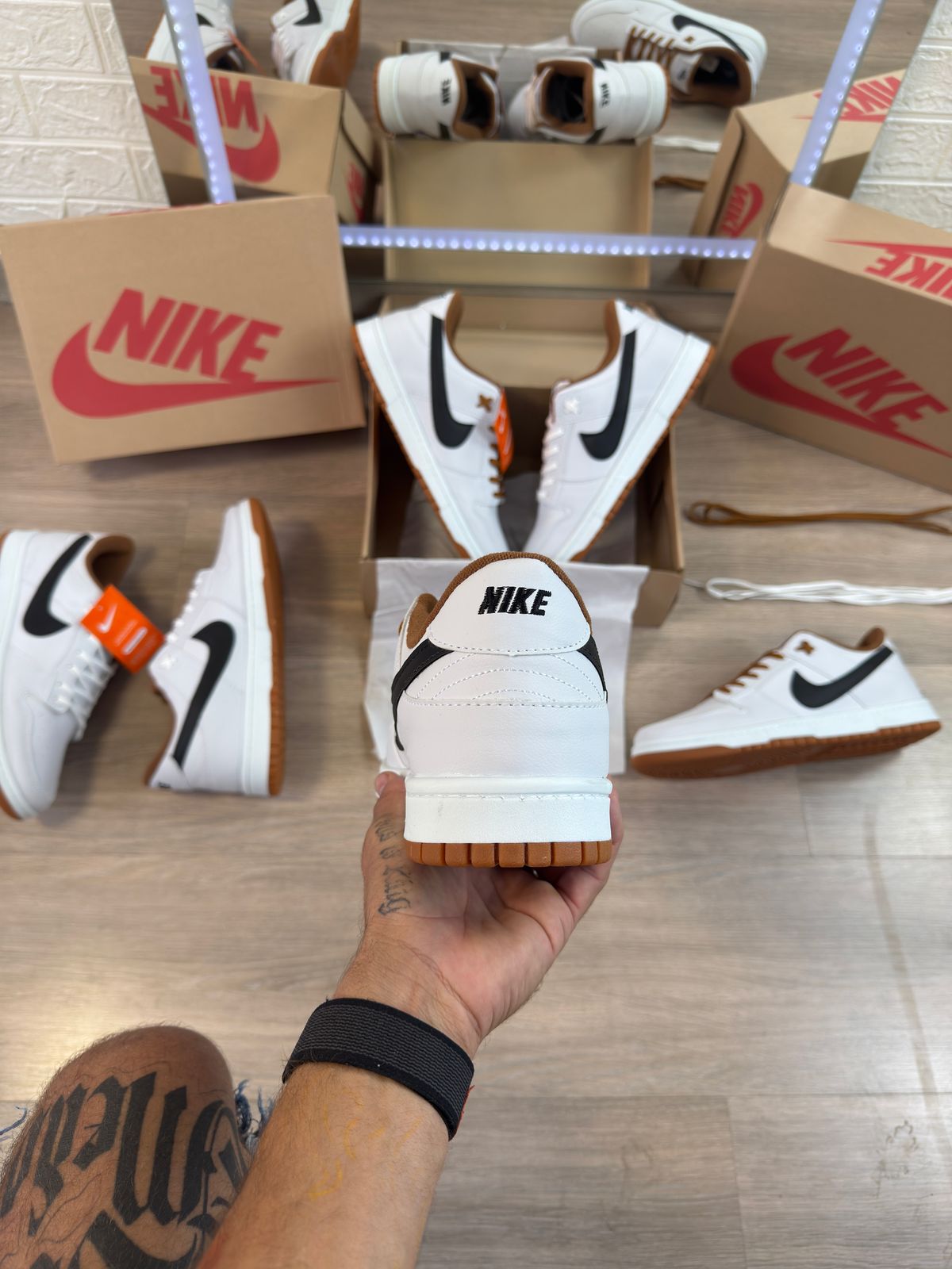 Comprar Tênis Nike SB Dunk Low Pro Branco Preto Caramelo Tamanho Especial Premium direto da fábrica de Nova Serrana MG com preço de atacado na Tênis Atacado Premium | Maior Variedade com Preço de Fábrica